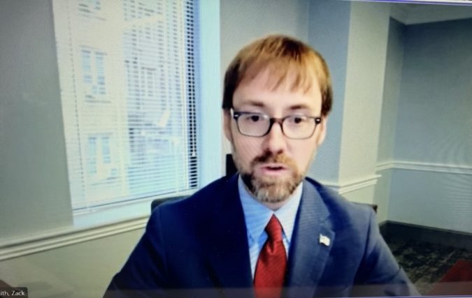 Zack Smith, a Heritage Foundation attorney, opened his testimony by touting the university’s recent momentum — record enrollment, a groundbreaking for a new stadium, and expanded military and nursing programs.
