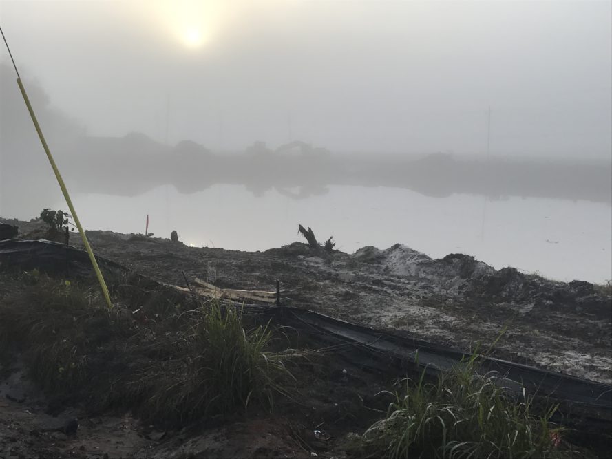They were told the heavy excavator equipment would also be removed by the end of the week and orange construction fencing would be placed around the site to keep children from playing the pond.