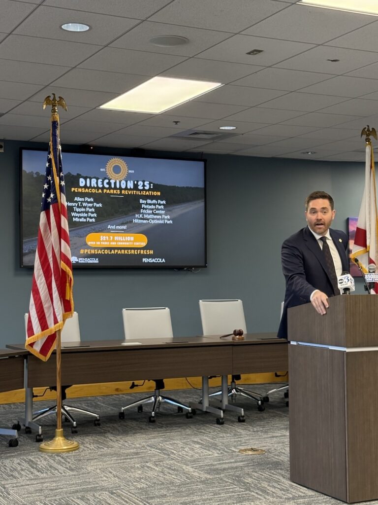 At his Thursday presser, Mayor D.C. Reeves unveiled a major citywide parks improvement plan dubbed “Direction 25,” committing $21.7 million to repair and maintain Pensacola’s parks and recreational facilities across all seven districts over the next two years.
