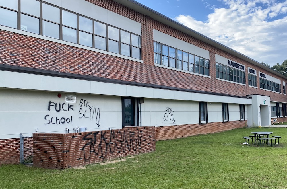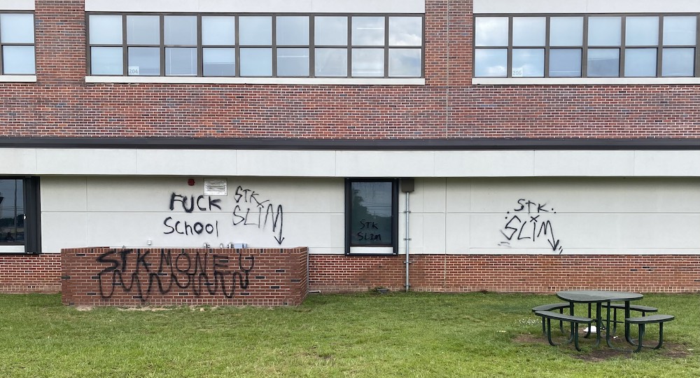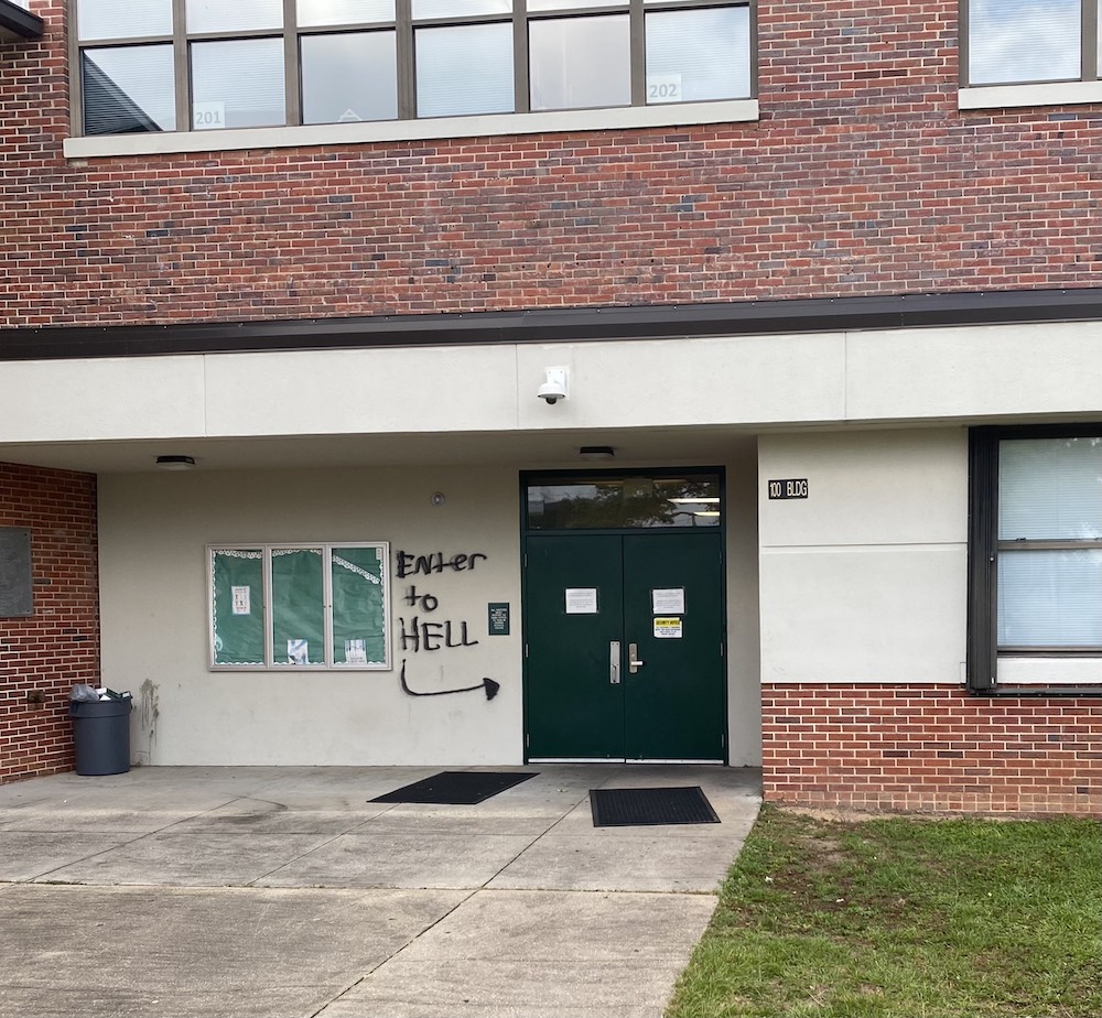 Vandals hit Warrington Academy. These photos were sent to the media Friday afternoon. Click on the image to enlarge.