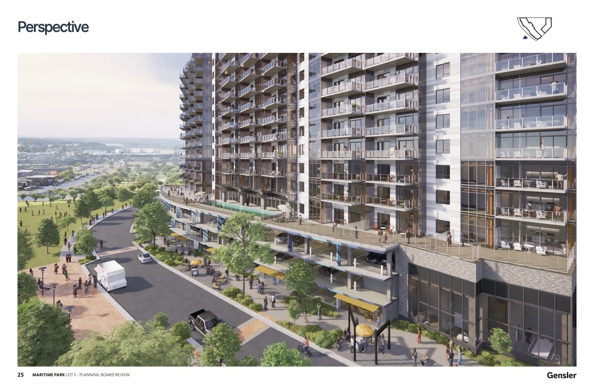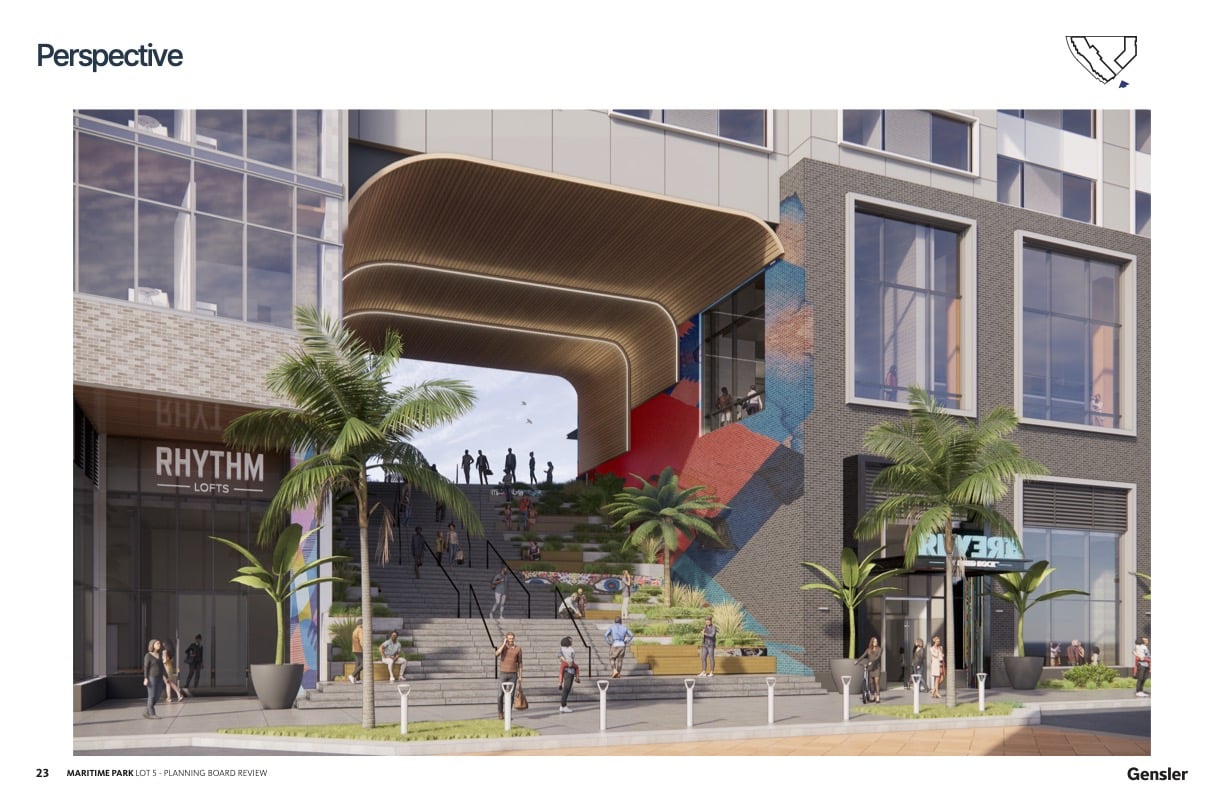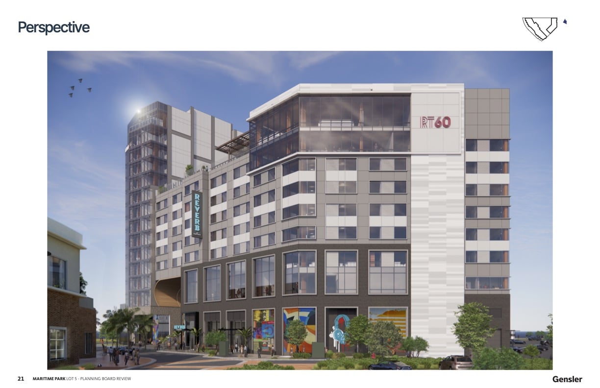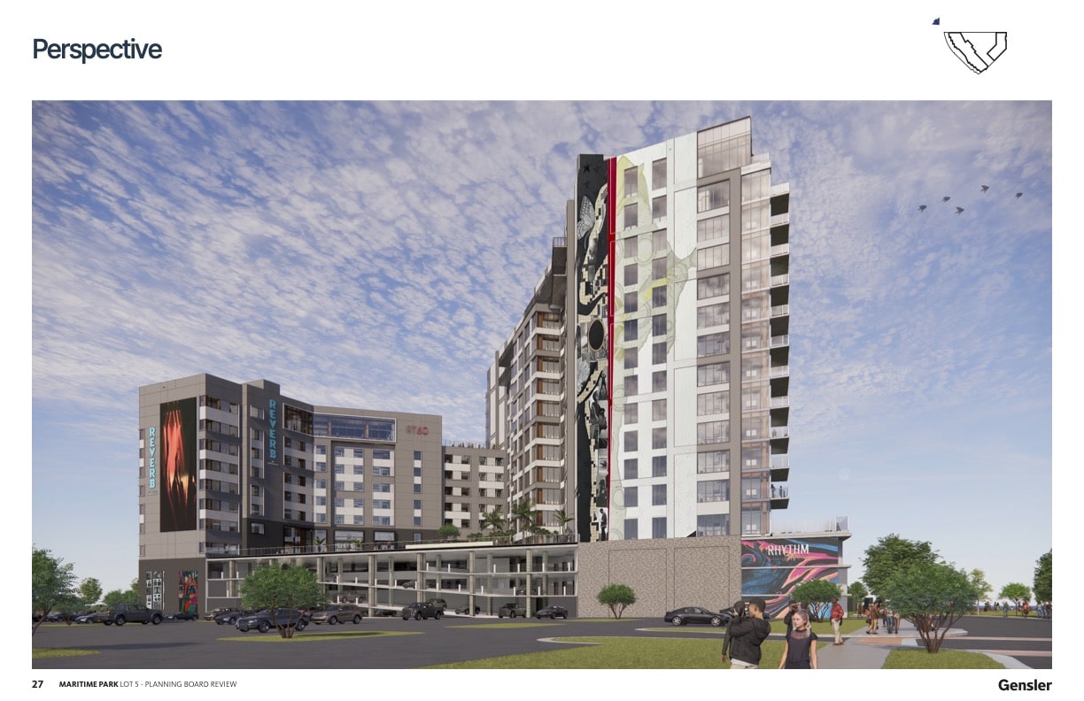 Inspired Communities of Florida has requested a final aesthetic review of a new mass-timber luxury apartment building and the Reverb by Hard Rock hotel from the City of Pensacola’s Planning Board, a requirement since the project is at the Maritime Park in the Waterfront Redevelopment District (WRD-1).