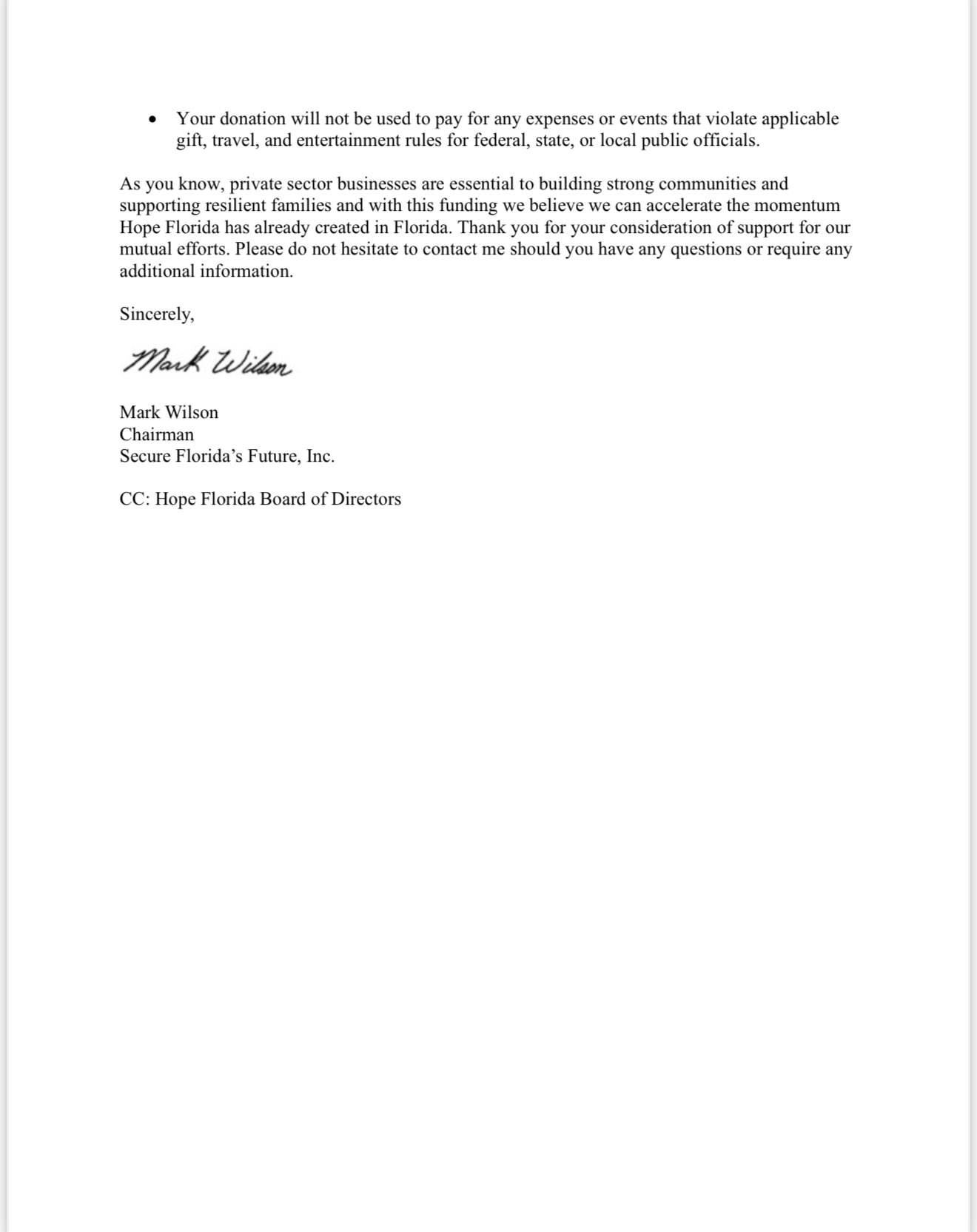 We have received a copy of the $5 million grant request made by Secure Florida’s Future, a 501(c)(4) nonprofit.