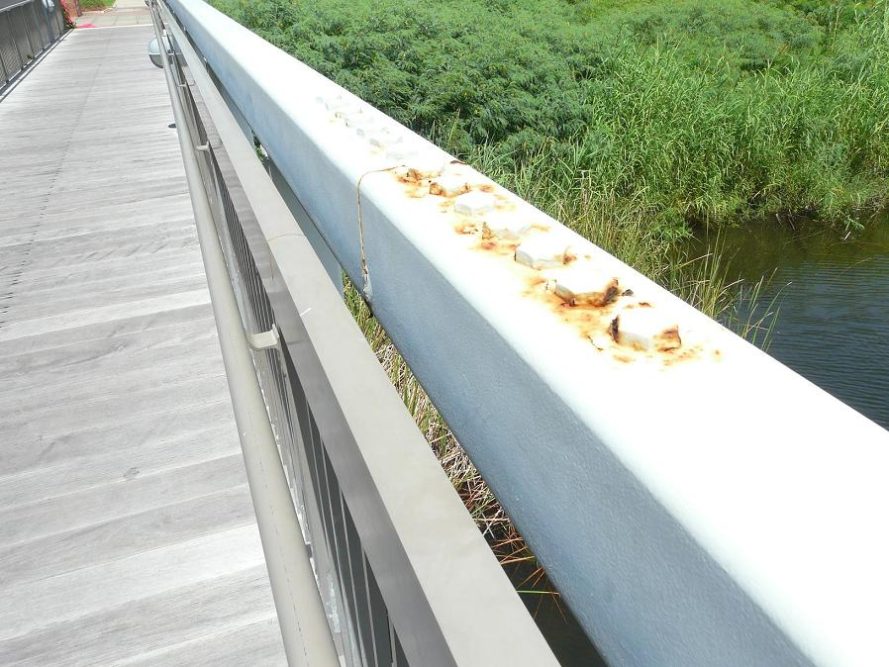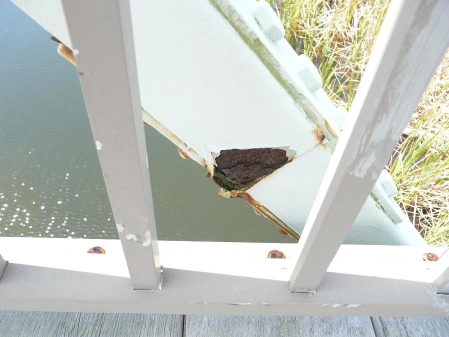 Please see the attached photos taken on Sunday, August 6 which show the sad condition of the Hawkshaw Lagoon Missing Children’s Memorial site which the City had agreed to maintain in a good state of repair and cleanliness. The site has now been “claimed” by a homeless lady and her friends for at least the past two months. The horrible conditions include numerous tiles that have been stolen, serious rusting of the structural bridge frame, non-working light fixtures and electrical outlets, and even aged human feces decorating the platform. Obviously, the state of the memorial is enough to discourage any visitors.