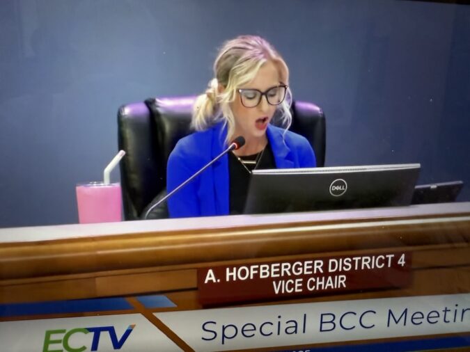 Escambia County Commissioner Ashlee Hofberger opened this morning’s Board of County Commissioners’ special meeting with a statement she read into the record: