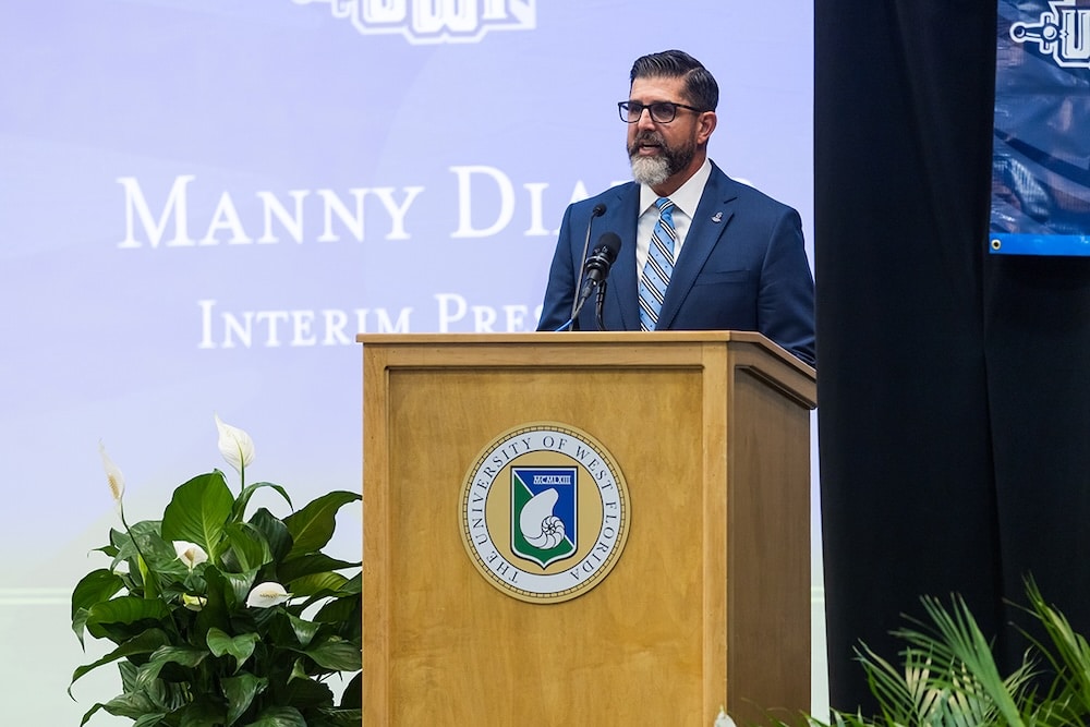 The University of West Florida held its annual State of the University address today, with Interim President Manny Diaz Jr. delivering the keynote. Joined by leaders from faculty, staff, and student government, the ceremony highlighted achievements across academics, research, athletics, and community engagement.