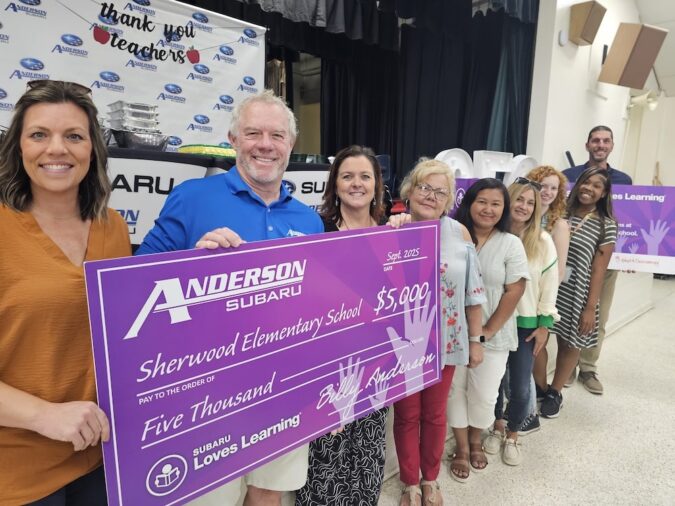 When teachers at Sherwood Elementary School gathered for what they thought was a routine back-to-school luncheon, they got the surprise of their academic year. Anderson Subaru presented the school with a $5,000 donation plus essential classroom supplies, supporting over 210 students across 10 classrooms.