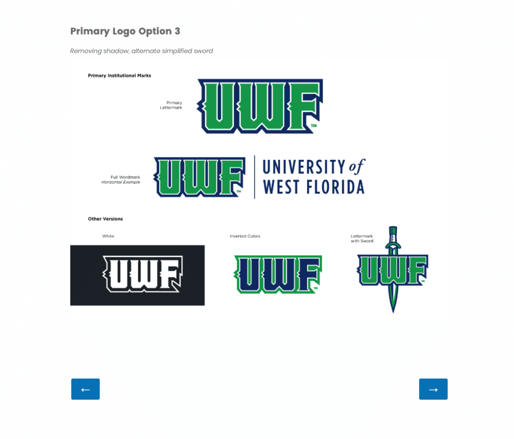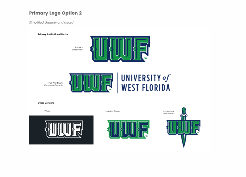 As part of this effort, we are inviting a select group of campus and community stakeholders to review three preliminary logo options and share feedback through a brief survey. Your perspective is important in helping ensure the final direction reflects the values, identity and aspirations of UWF.