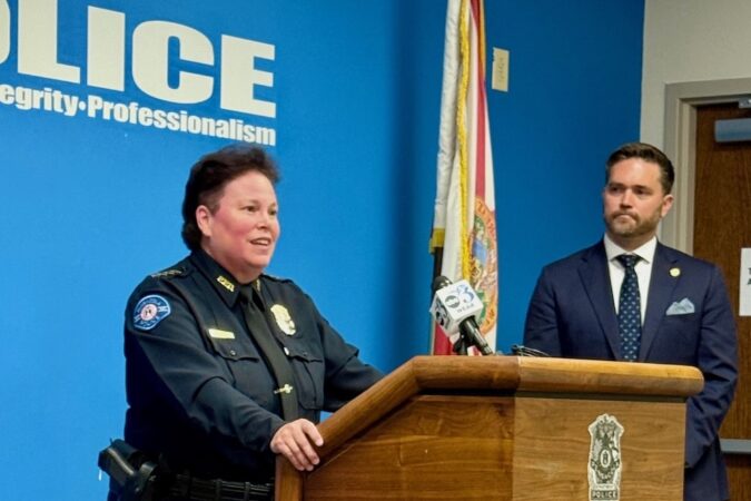 This morning, Pensacola Mayor D.C. Reeves held a press conference at the Louis Goss Police Headquarters to formally introduce Acting Police Chief Kristin Brown, following the departure of Chief Eric Randall on July 10.