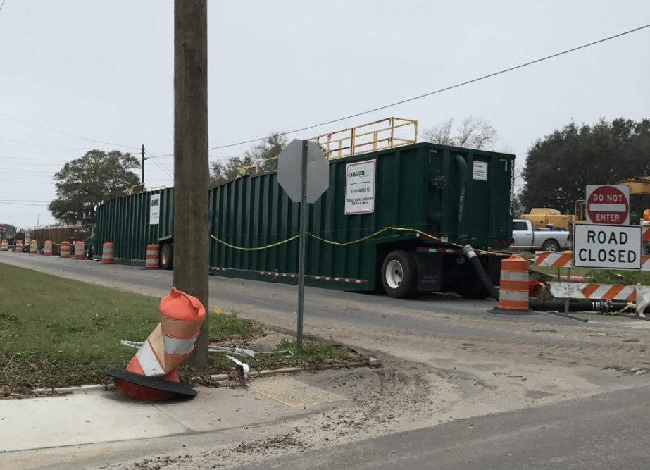 The filtration system is blocking Coyle Street. No fencing has been placed around the pond. The side streets are muddy and dirty.